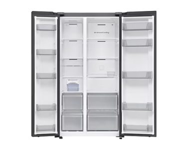 * You can select the door opening level using the SmartThings App (SmartThings is available on Android and iOS devices. A Wi-Fi connection and a Samsung account are required). The ‘Wide-open’ option automatically opens the door by an angle of 80 degrees or more, but the door does not close automatically. The ‘Semi-open’ option reduces the force required to open the door, and automatically closes the door after a certain period of time if the door is left open. The actual angle that the doors open may vary due to the installation circumstances and usage conditions, like storing heavy items in the door bins.